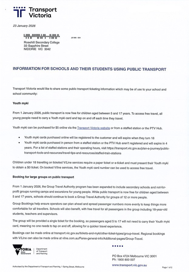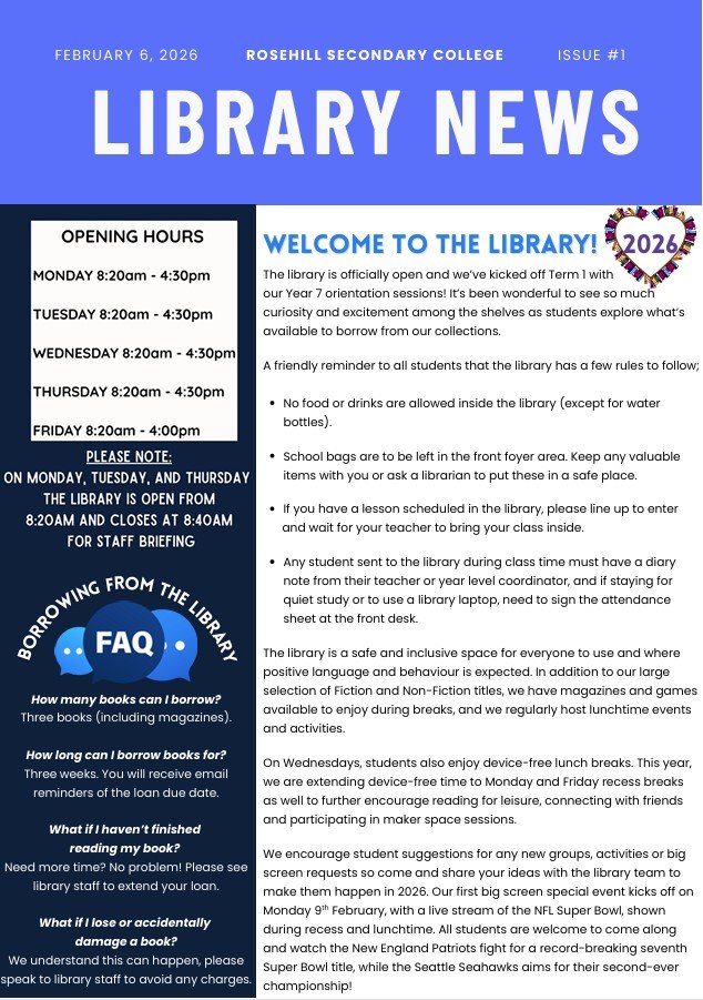 Within this Newsletter is information relating to the School Council and its elections. The are three (3) two-year vacancies for parent/guardian representatives to join School Council for 2026-2027. If interested or would like more information, please email the Business Manager, Judith Wright at rosehill.sc@education.vic.gov.au