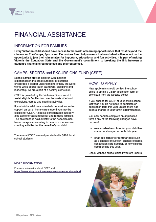 If you have a current Health Care Card or Pension Card, you may be eligible for the Camps/Sport/Excursions Fund (CSEF) payment. This funding can be used towards excursions, camps and sporting activities that run throughout the year at Rosehill.