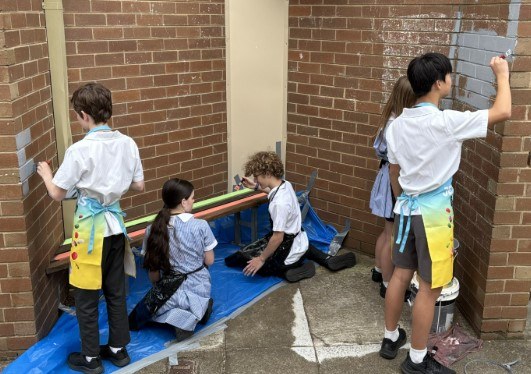 A heartfelt thank you goes to Virginia and her talented team of artists, who have been working tirelessly to bring this vision to life. We are also incredibly proud of Year 7 student, Bastian Stopka, whose beautiful mural design will soon sit behind the seating area and complete the space. His creativity and hard work reflect the spirit and talent within our school community.