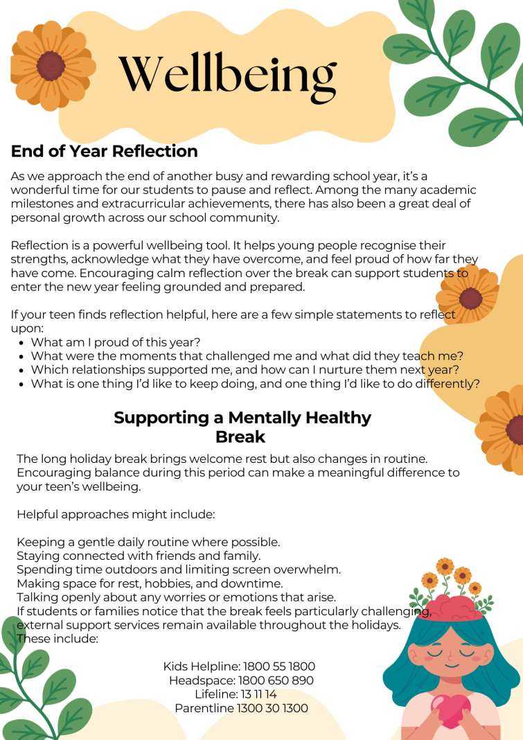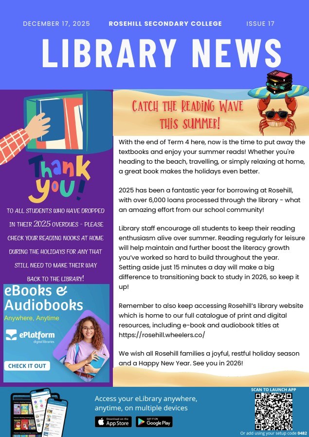 The extended summer break provides a valuable chance to relax, reconnect with family and friends, and recharge for the year ahead. It is also an ideal time to reinforce the importance of reading. As highlighted in the previous newsletter, regular reading plays a vital role in developing comprehension, vocabulary and critical thinking. I strongly encourage families to support students in reading their prescribed novels in preparation for 2026. Much like rewatching a favourite film, revisiting a text can reveal new details, deeper meaning and fresh perspectives. Talking with your child about the characters, themes or ideas they find interesting is a wonderful way to support this learning.