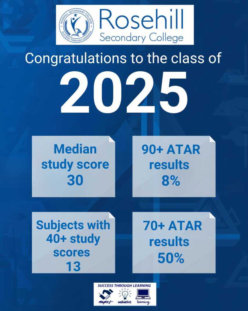 I extend my warmest wishes to you all for a safe, restful and enjoyable summer break, and every good wish for the year ahead. To those in our community who celebrate Christmas, I wish you a very Merry Christmas. On behalf of the staff at Rosehill Secondary College, thank you for the continued support and partnership you show our school. We greatly value this connection and look forward to continuing our shared learning journey in 2026.